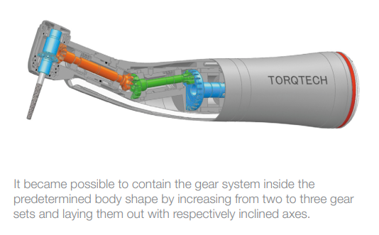 This substantially improved ergonomics and access to the molars, making great advancements in practitioner and patient comfort. We are confident that this is the most ideal shape achievable at present, because further reduction in the gear size would compromise durability due to technological obstacles.