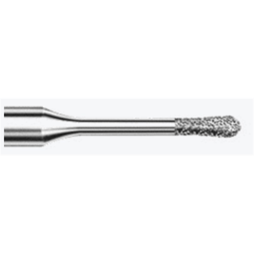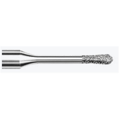 Micro Pear Slim, medium grit, friction grip short / paedo diamond. Head diameter 009 (0.9mm) with 2.7mm working length. Maximum recommended speed 300,000 rpm.