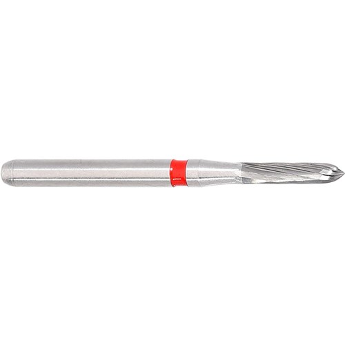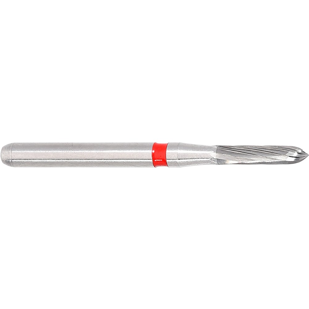 H282 parallel chamfer torpedo, 8-10 blade tungsten carbide for crown preparation finishing. FG 314 shank, size 012 (1.2mm diameter), with 6mm working length. Matches 877 diamond series.