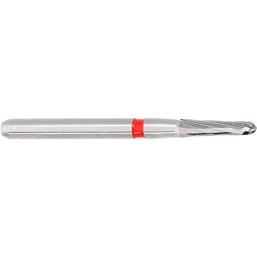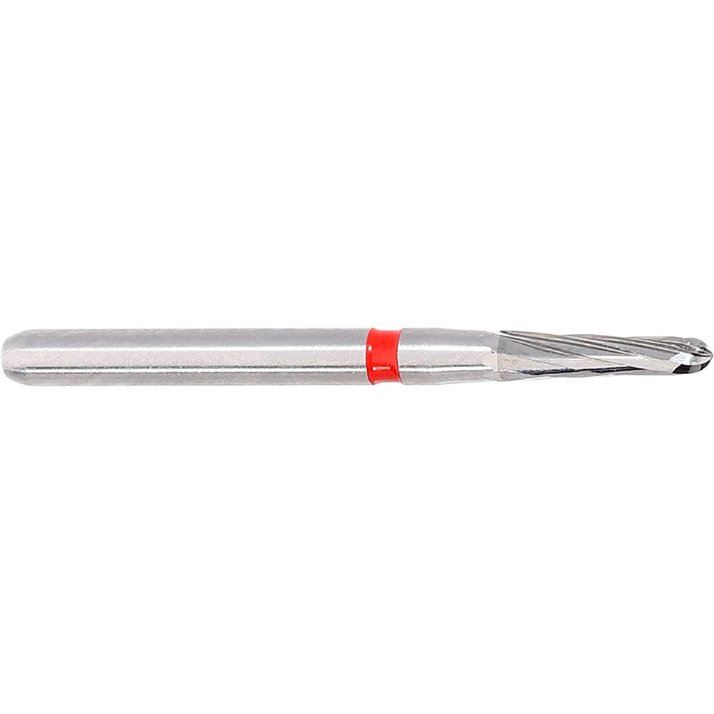 H282K tapered chamfer torpedo, 8-10 blade tungsten carbide for crown preparation finishing. FG 314 shank, size 014 (1.4mm diameter), with 6mm working length and 2 degree angle. Matches 877K diamond series.