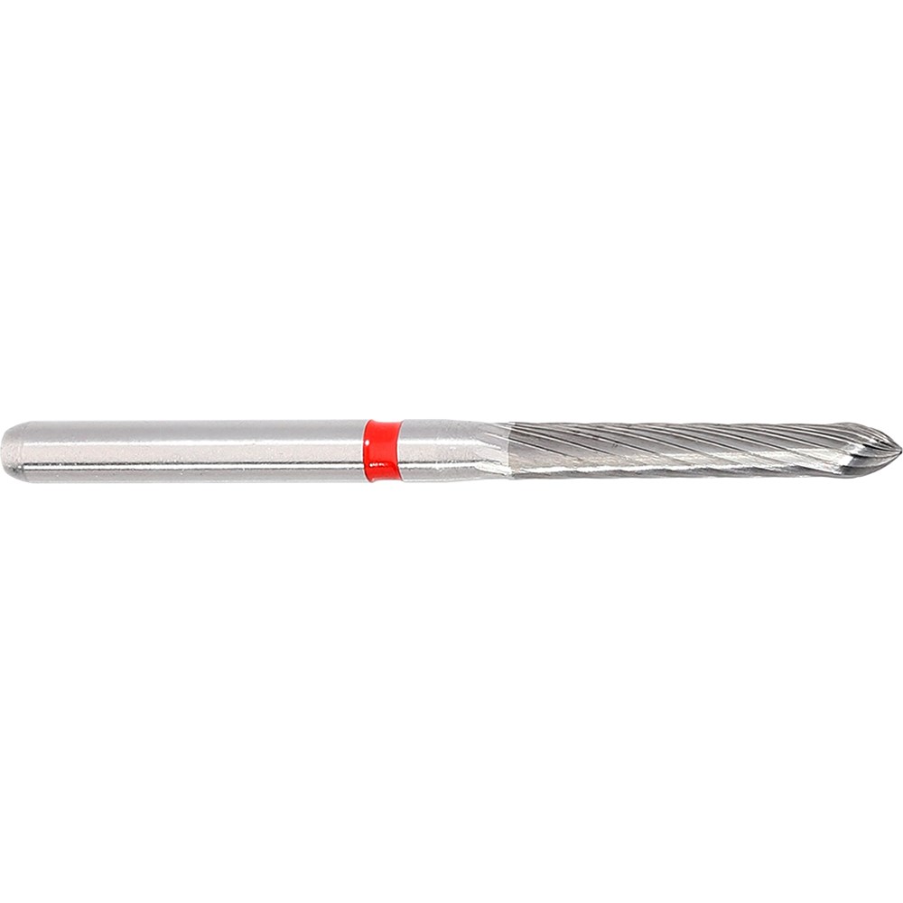 H284 parallel chamfer torpedo, 12 blade tungsten carbide for crown preparation finishing. FG 314 shank, size 014 (1.4mm diameter), with 10mm working length. Matches 879 diamond series.