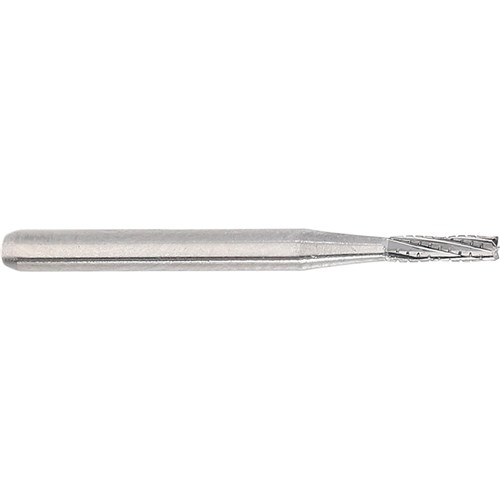 H31 cylinder with cross cut, tungsten carbide cutter for cavity preparation. FG 314 shank, size 010 (1.0mm) diameter with 4.2mm working length. US number 557