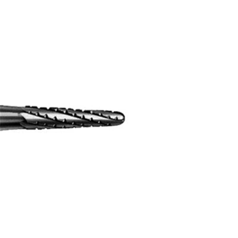 H33 tapered with cross cut, tungsten carbide cutter for oral surgery. FGXL 316 extra long shank, size 016 (1.6mm) diameter with 4.4mm working length. US number 702
