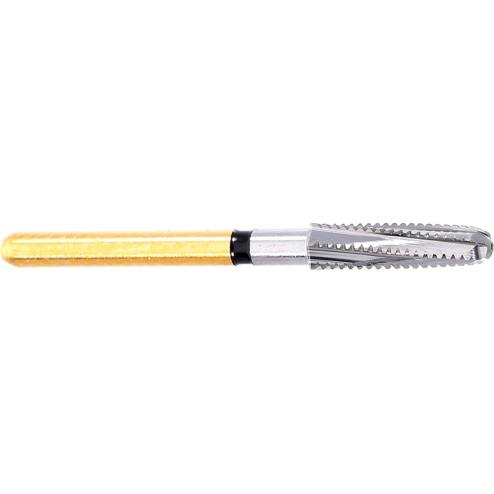 H856G tapered chamfer rounded, tungsten carbide for intraoral work on titanium. FG 314 shank, size 020 (2.0mm) diameter with 8mm working length. Matches 856 diamond series