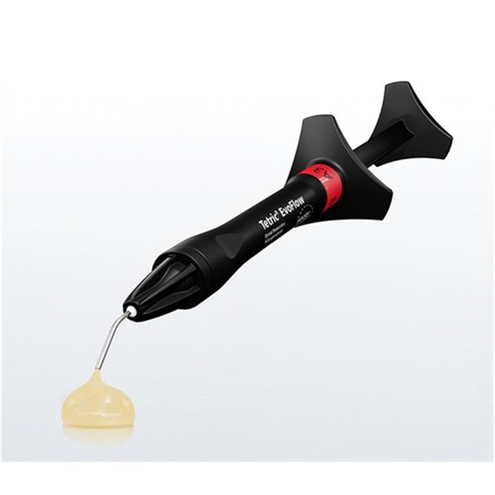 Tetric Evoflow is a light-curing, radiopaque nanohybrid composite that is based on the latest technology for direct restorative therapy and the cementation of ceramic and composite restorations.