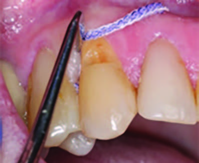 Figure 2. Placement of the retraction cord to improve isolation and access to the cervical area prior to preparation.
