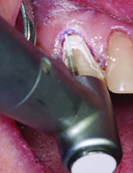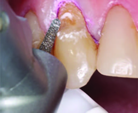 Figure 9. Initial contouring and shaping of the restoration using a fine-grit diamond bur.