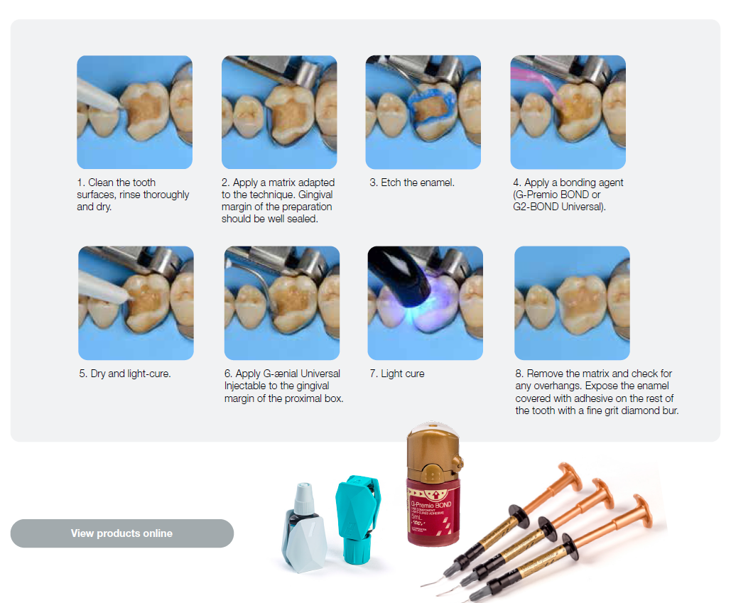 • Use XBW shade of G-ænial™ Universal Injectable for easy differentiation between the tooth, composite material and the restoration.