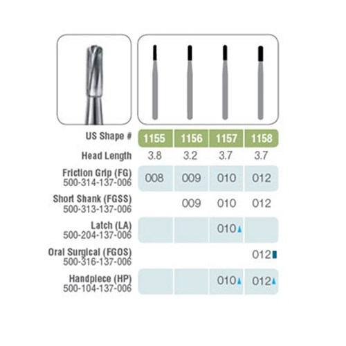 Tungsten Carbide Bur JET #1157 010 Round End Fissure FG x 5