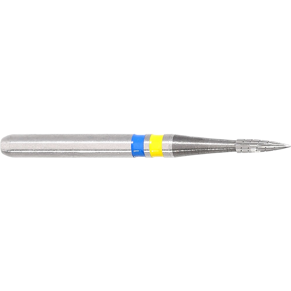 H246Q Q-Finisher with cutting tip for working on occlusal surfaces of composites. FG 314 shank, size 009 (0.9mm diameter), with 3.7mm working length. Q-Finisher for efficient work on composites to achieve optimal results. Tungsten carbide finishers create smooth surfaces in little time and Q-Finishers provide a more efficient finishing procedure. A better surface quality can be achieved after just one finishing step, due to the cross cut toothing specially designed for work on fillings.