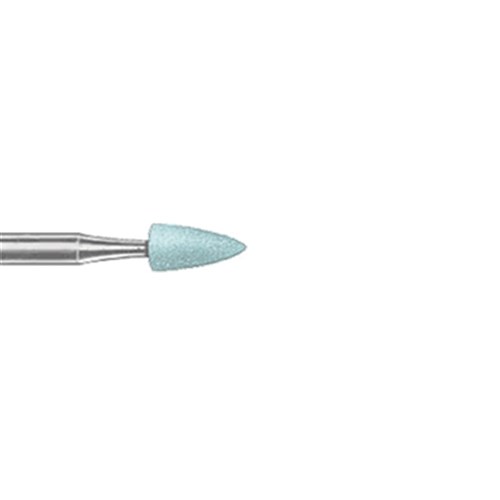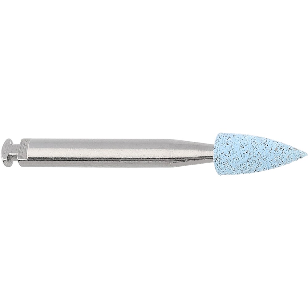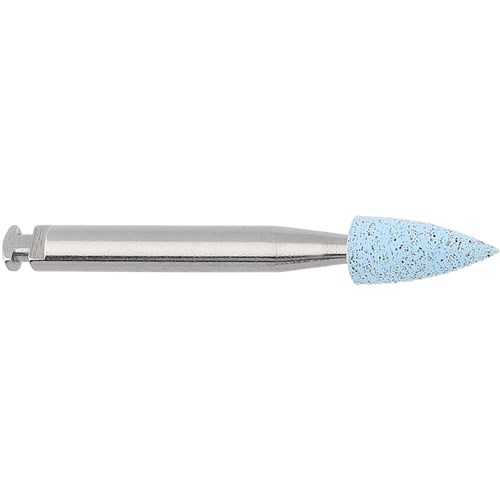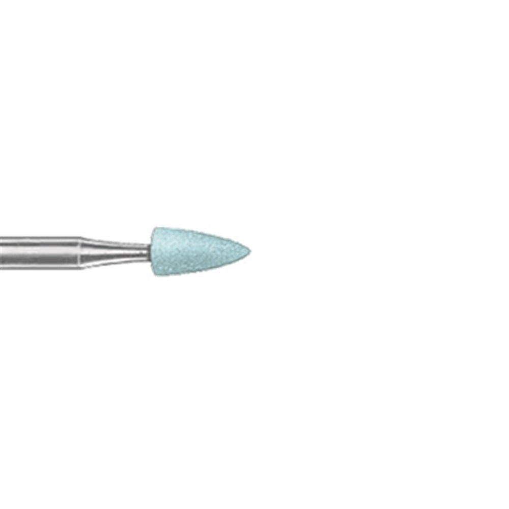 Composite polisher interspersed with diamond grit used with spray coolant. Flame, Coarse, RA 204, with 030 diameter and 7mm working length.