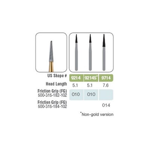 Kerr Jet Tungsten Carbide Bur - 9714-014 - Taper Finishing - High Speed, Friction Grip (FG), 5-Pack