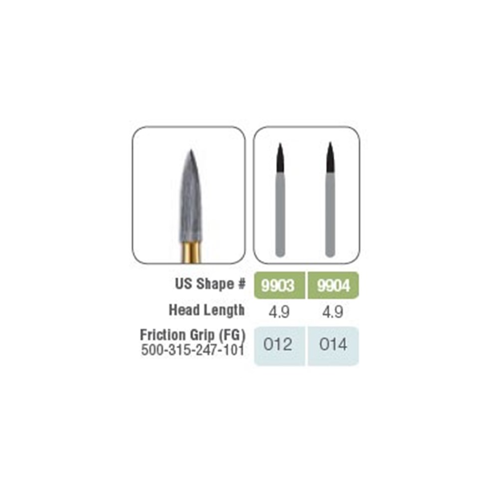 Kerr Jet Tungsten Carbide Bur - 9903-012 - Needle Finishing - High Speed, Friction Grip (FG), 5-Pack