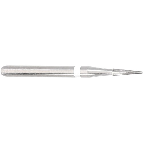 Tungsten carbide flame FG bur. 30 Blades, Ultra Fine, safe end. Size 010 with 4.2mm working length. Matches 956UF / FSD4UF diamond series.