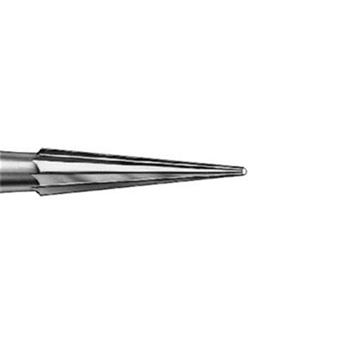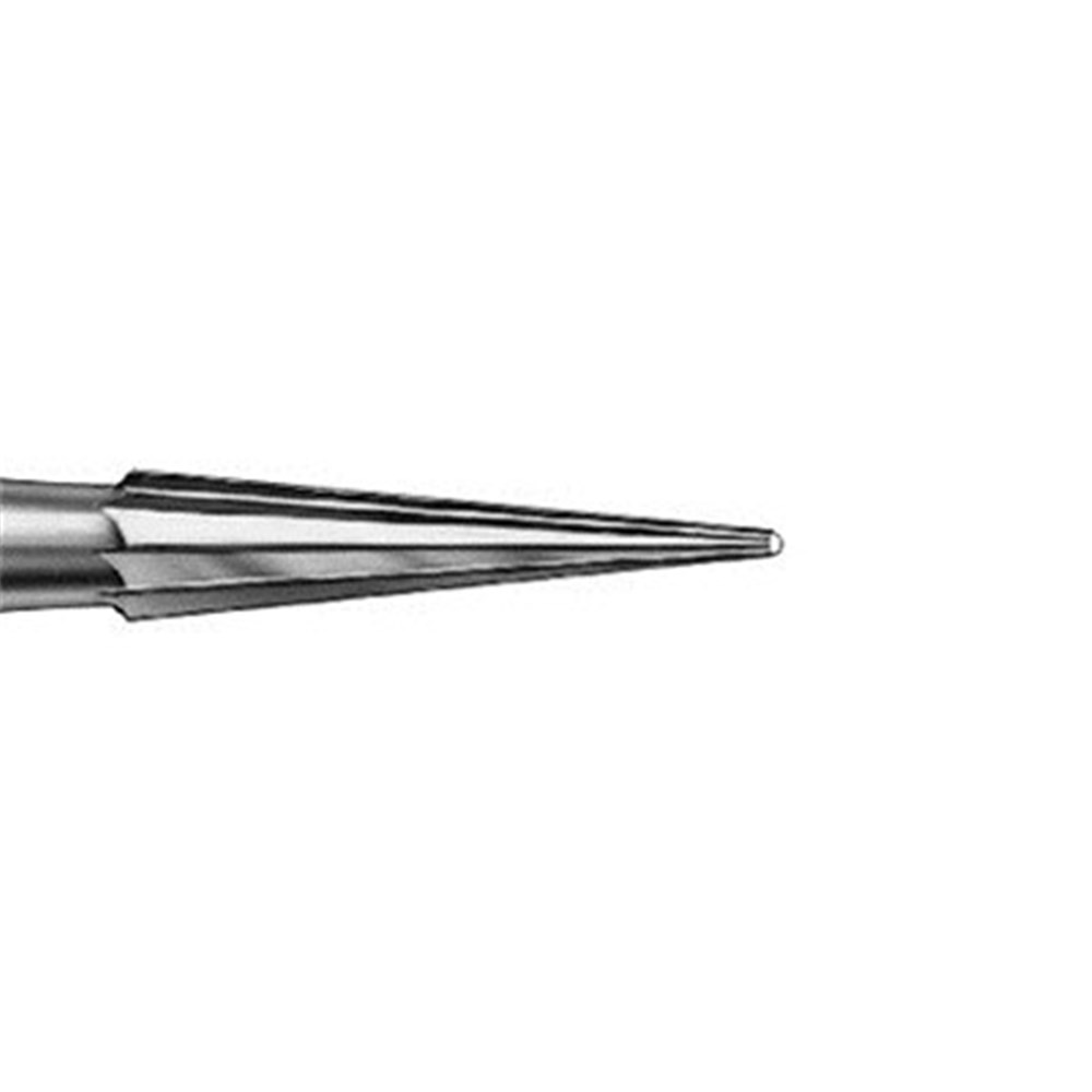 Tungsten carbide flame FG bur. 8 Blades, normal, safe end. Size 014 with 6mm working length. Matches 8852 / FSD6F diamond series.
