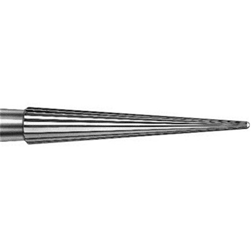 Tungsten carbide flame FG bur. 16 Blades, extra fine, safe end. Size 014 with 9mm working length. Matches 859EF / FSD9EF diamond series.