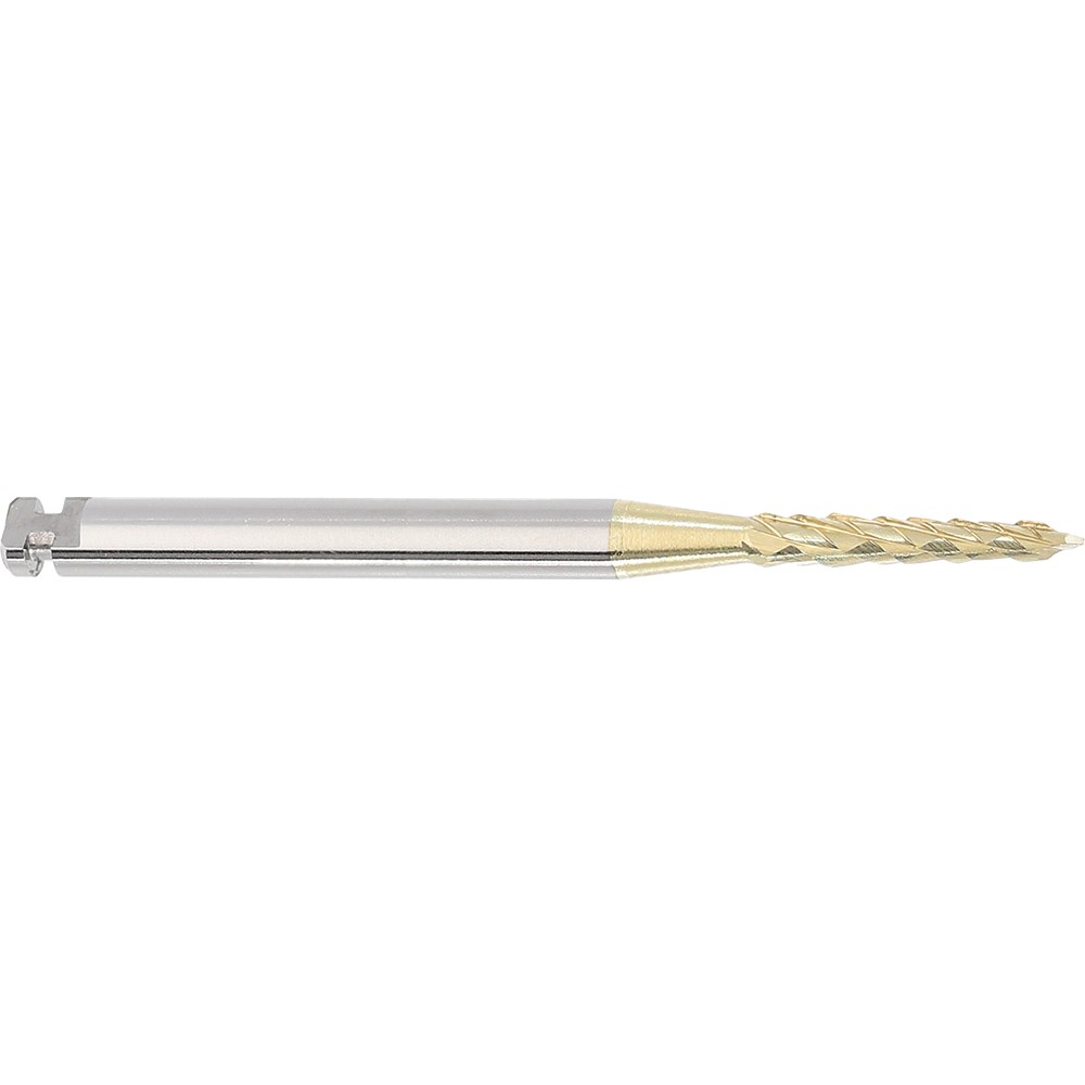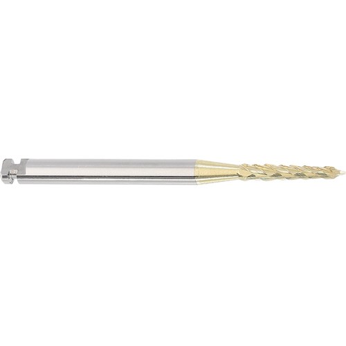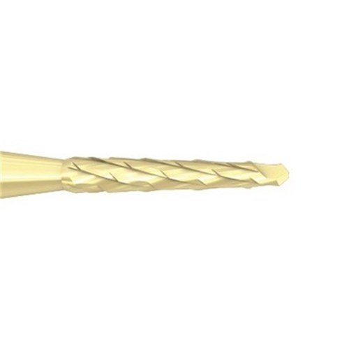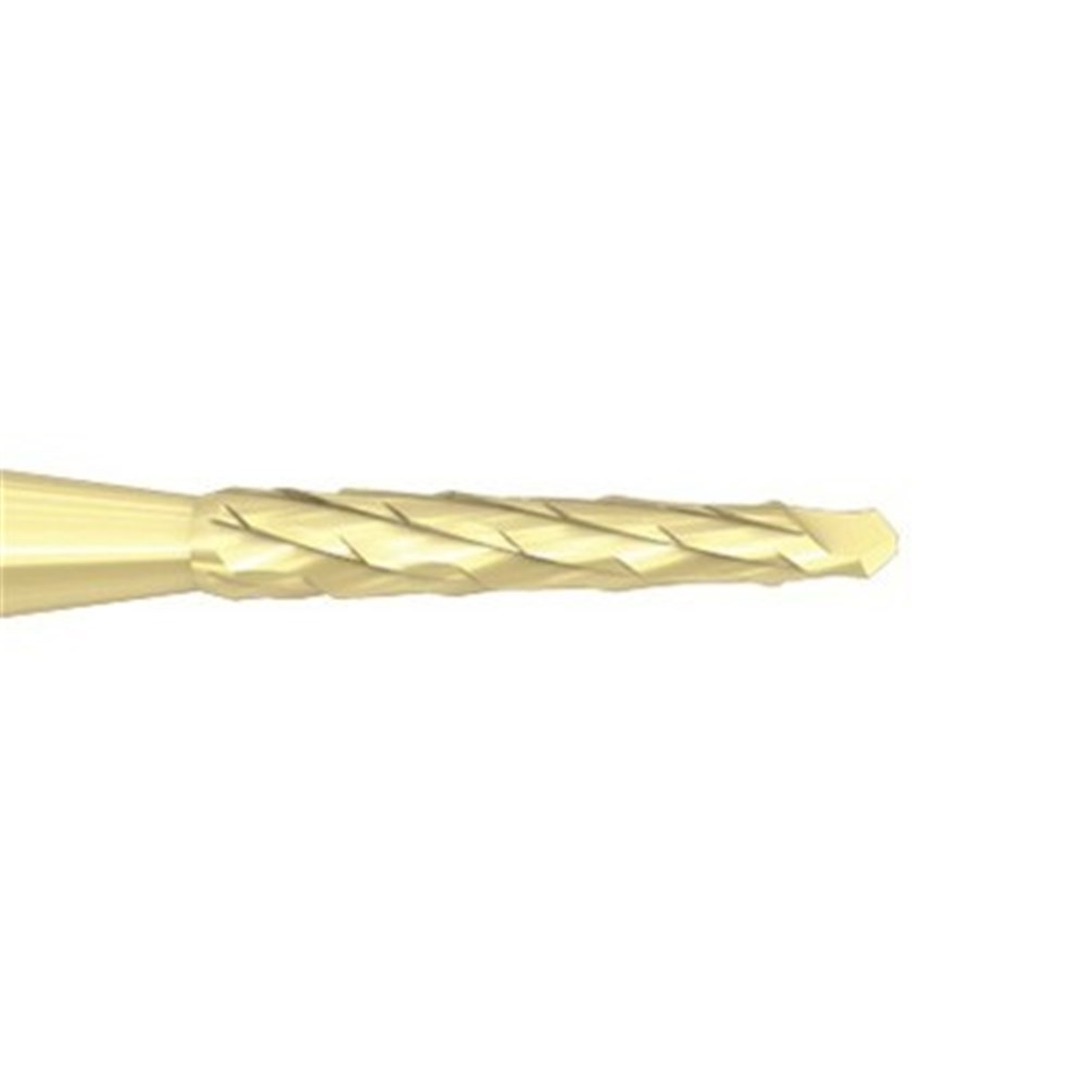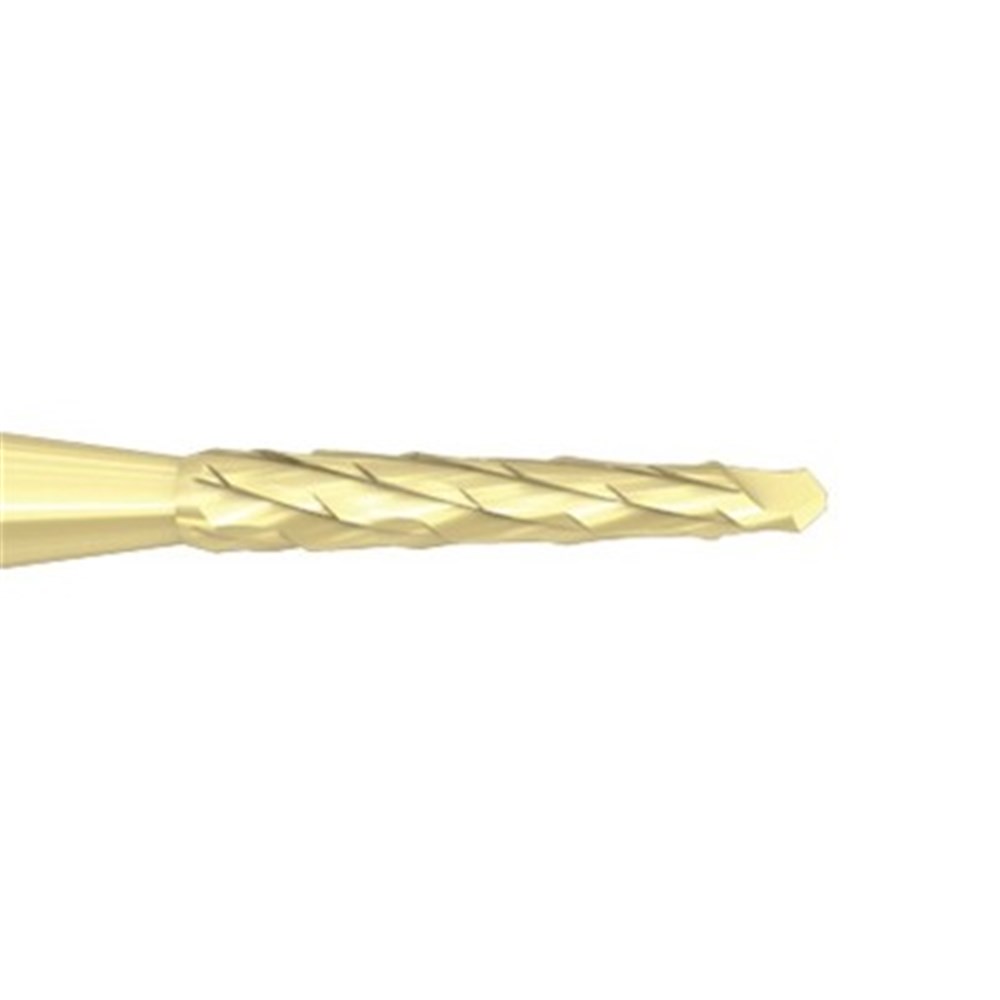 Oral Surgery tungsten carbide, Lindemann bone cutter H162AZ with special staggered toothing, ZrN coated. RAL 205 long shank for right-angled handpiece, size 016 (1.6mm) diameter with 9mm working length.