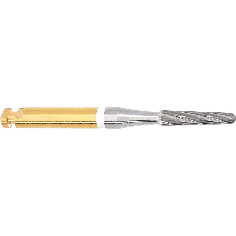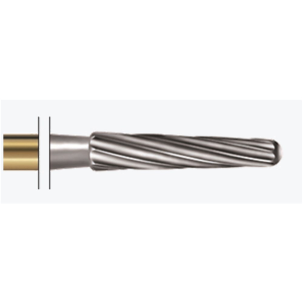 H22ALGK tungsten carbide, safe end, adhesive remover for labial surface. RA 204 shank for right angle handpiece, size 016, diameter 1.6mm with 8.3mm working length. After completion of an orthodontic treatment with brackets, the dentist has to remove adhesive residues quickly and without damaging sound tooth substance. We recommend these instruments to gently remove such adhesive residues. Safe end in order not to damage the gingiva, safety chamfer in order to avoid groove formation. For removal of adhesive residues without damaging the enamel.