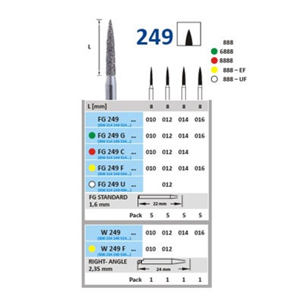 Horico Diamond Bur - 249-014 - Flame Pointed - Slow Speed, Right Angle (RA), 1-Pack