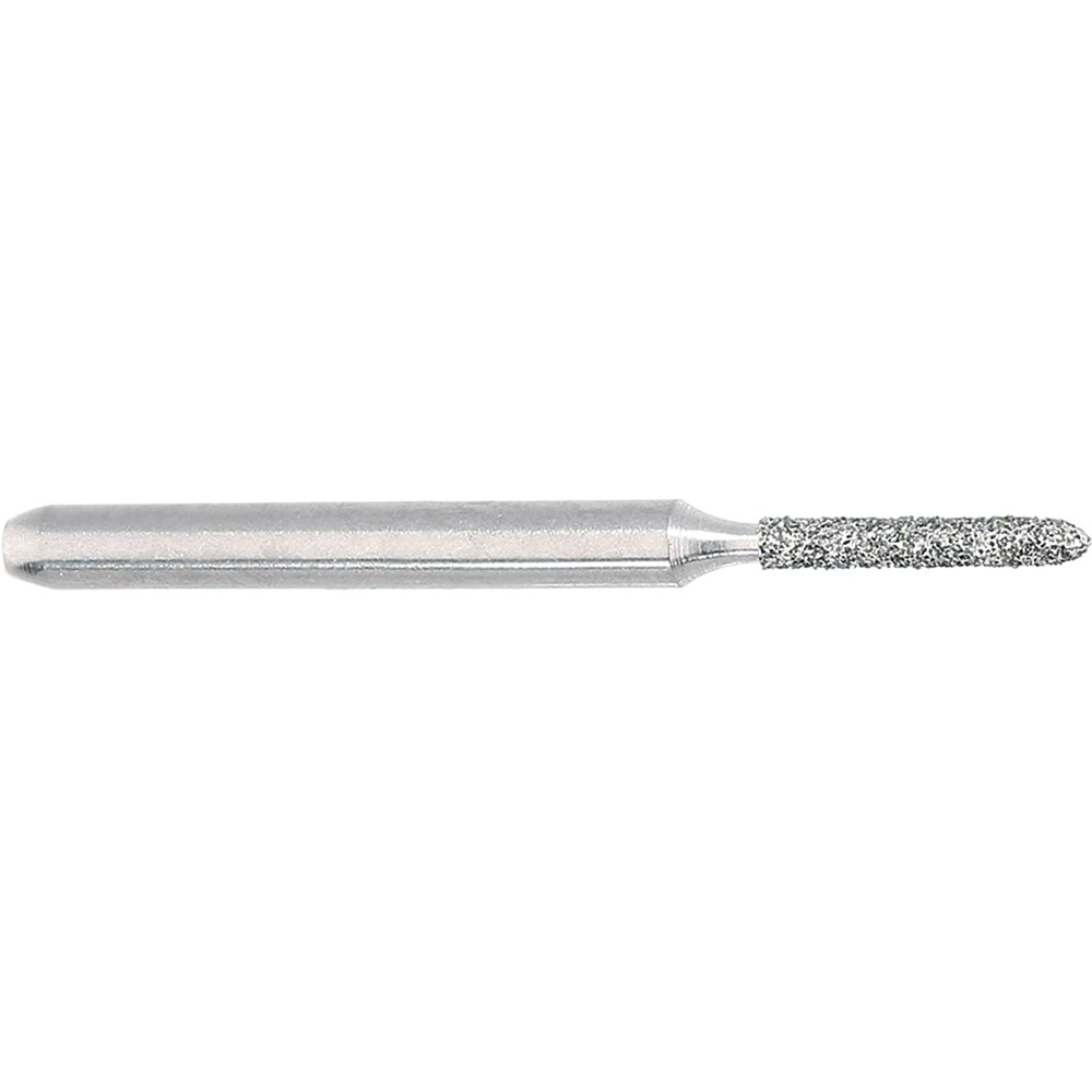 Short tapered chamfer, torpedo, medium grit, friction grip diamond. Head diameter 009 (0.9mm) and 6mm working length. Matches H282 carbide finisher series