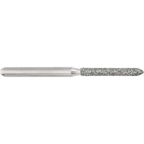 Long parallel chamfer, torpedo medium grit, friction grip diamond. Head diameter 010 (1.0mm) and 10mm working length. Matches H284 carbide finisher series.