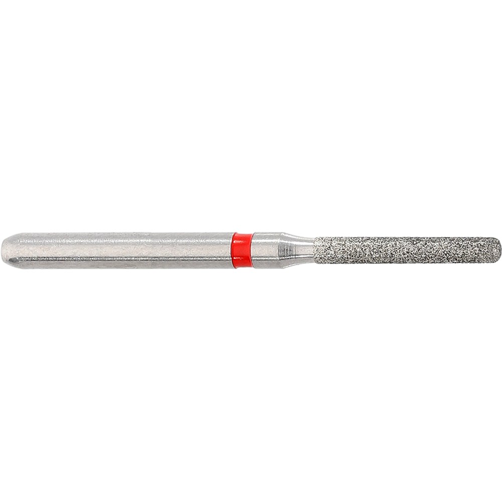 Fine grit diamond, friction grip, parallel shoulder, rounded edge. Size 014 (1.4mm) with 8mm working length. Matches H297 carbide finisher series.