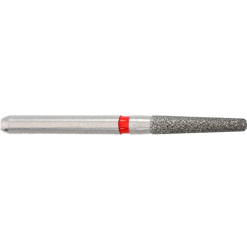 Tapered shoulder, rounded edge, crown preparation finishing bur. Fine grit, FG 314, 016 diameter, 8mm working length with 2 degree taper. Matches H336 carbide finisher series.