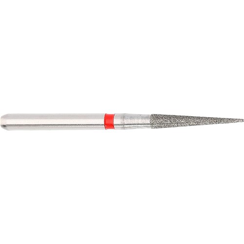 Tapered pointed finishing diamond for crown preparation of working on filling material. Fine grit, FG 314, 014 diameter, working length 9mm with a 3.7 degree taper. Matches H135/FS9 carbide finisher series.