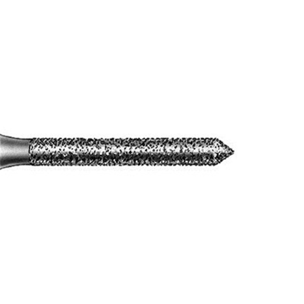 Cylinder long with beveled tip for crown preparation. Fine grit, FG 314, 012 diameter and 10mm working length.