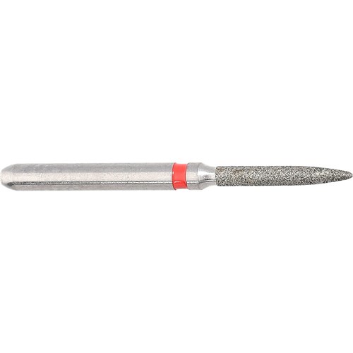 Flame finishing diamond for finishing feather edge crown preparation or working on filling material. Fine grit, FG 314 with 012 diameter and 8mm working length. Matches H48L carbide finisher series.
