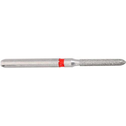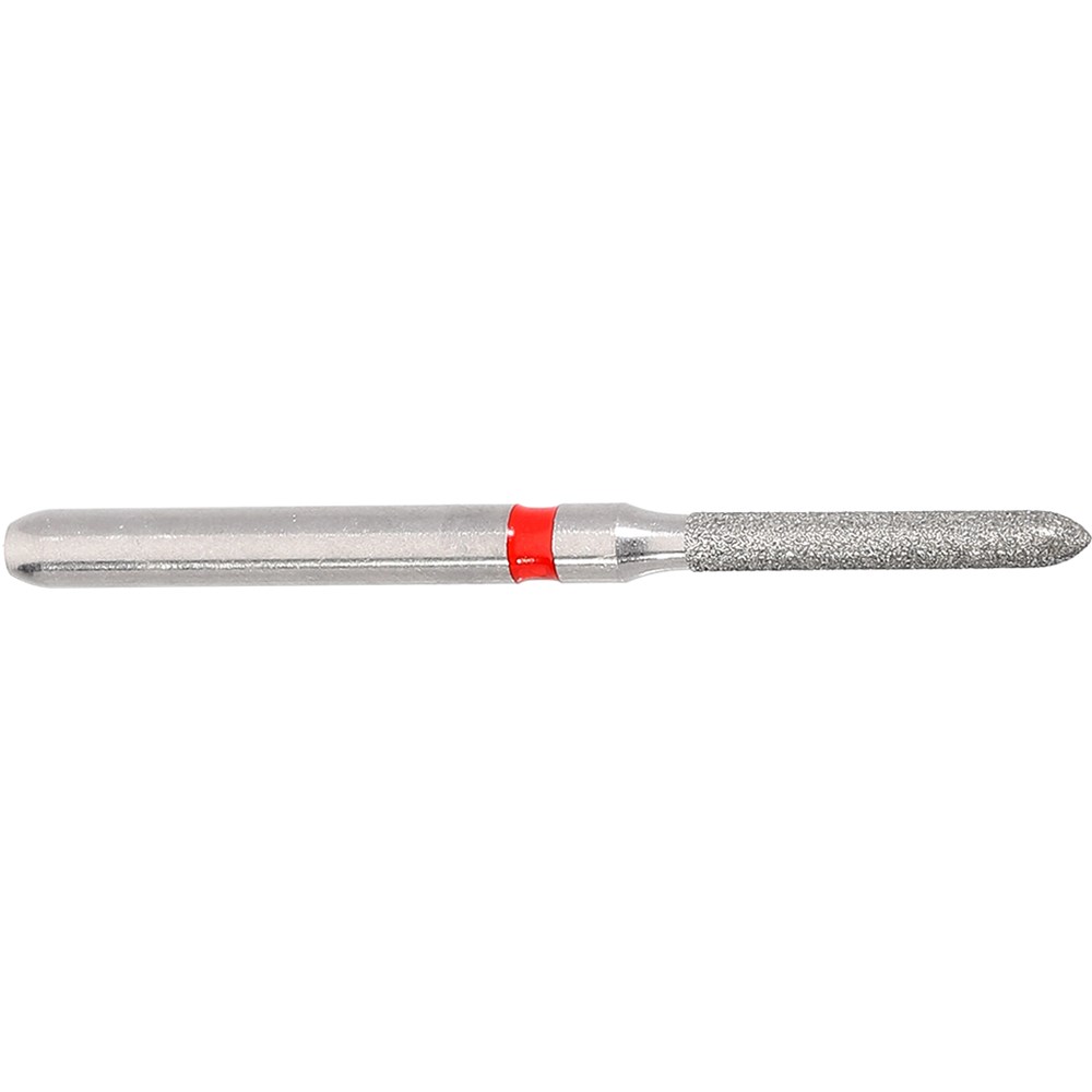 Parallel chamfer, torpedo, fine grit, friction grip FG 314 diamond finisher for crown preparation. Head diameter 012 (1.2mm) and 8mm working length. Matches H283 carbide finisher series