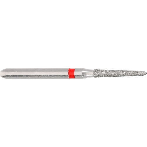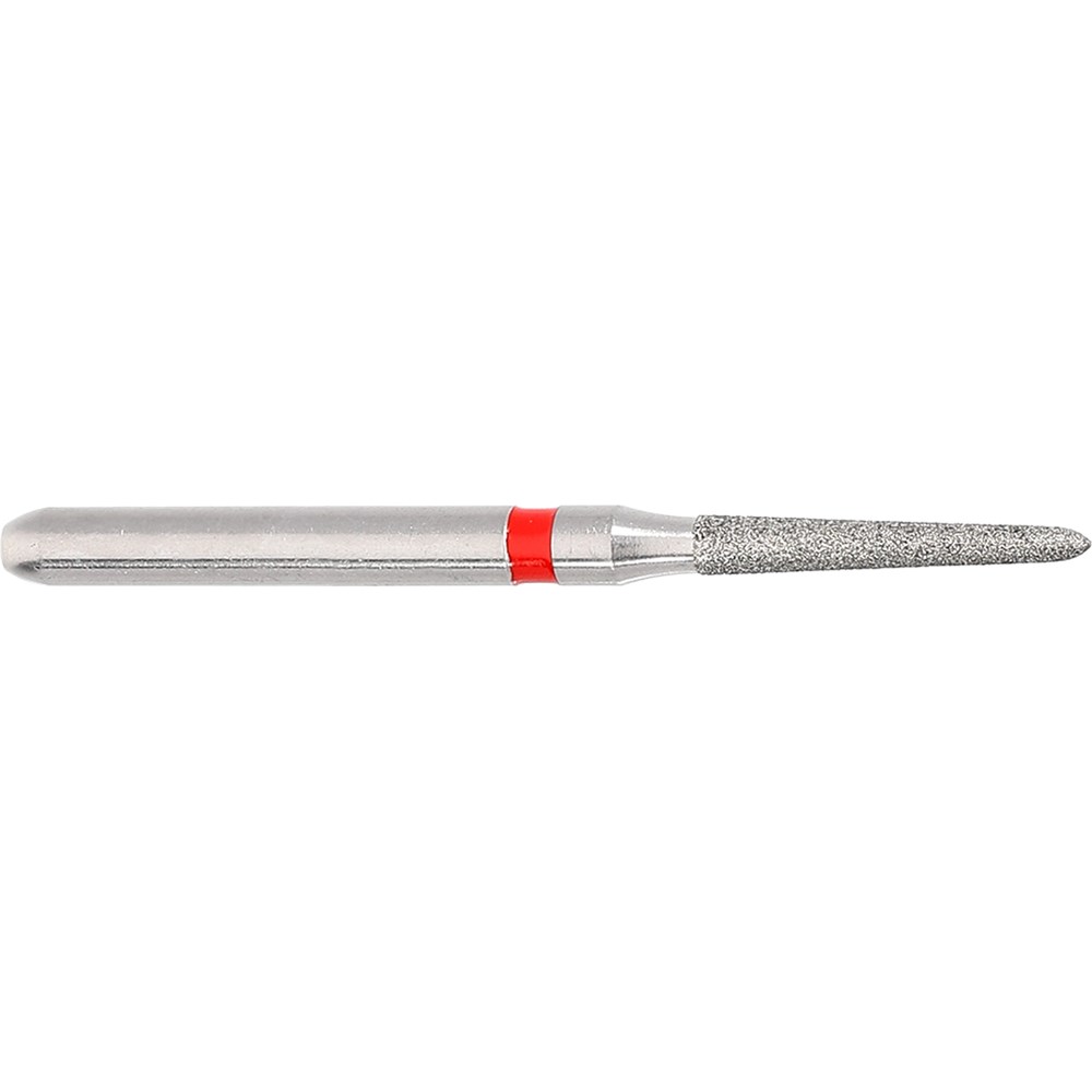 Tapered chamfer, torpedo, fine grit, friction grip FG 314 diamond finisher for crown preparation or cavity preparation. Head diameter 012 (1.2mm) with 2 degree angle and 8mm working length. Matches H283K carbide finisher series