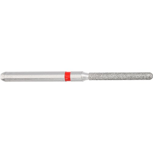 Fine grit, long parallel chamfer rounded edge, friction grip diamond used for finishing crown preparation. Size 012, with length 10.0mm.