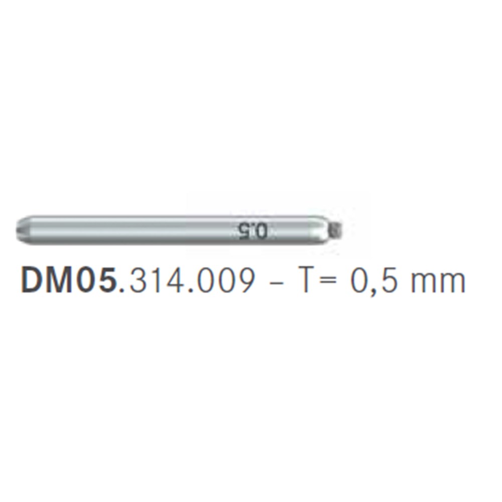 DM05 FG 314, size 009 (0.09mm) with cutting depth of 0.5mm. PrepMarker burs are designed for marking the required depth prior to the actual preparation. The rounded step above the diamond coated working part, prevents inadvertent excessive preparations. The instruments are available in 4 versions. 0.5, 1. 1.5, and 2mm. The correct depth can be identified at a glance, thanks to the clearly visible laser mark on the shank. PrepMarkers can be used for all kinds of depth marking as a prepatory measure for veneers, inlays, onlays, overlays, occlusal onlays, crowns & bridges.