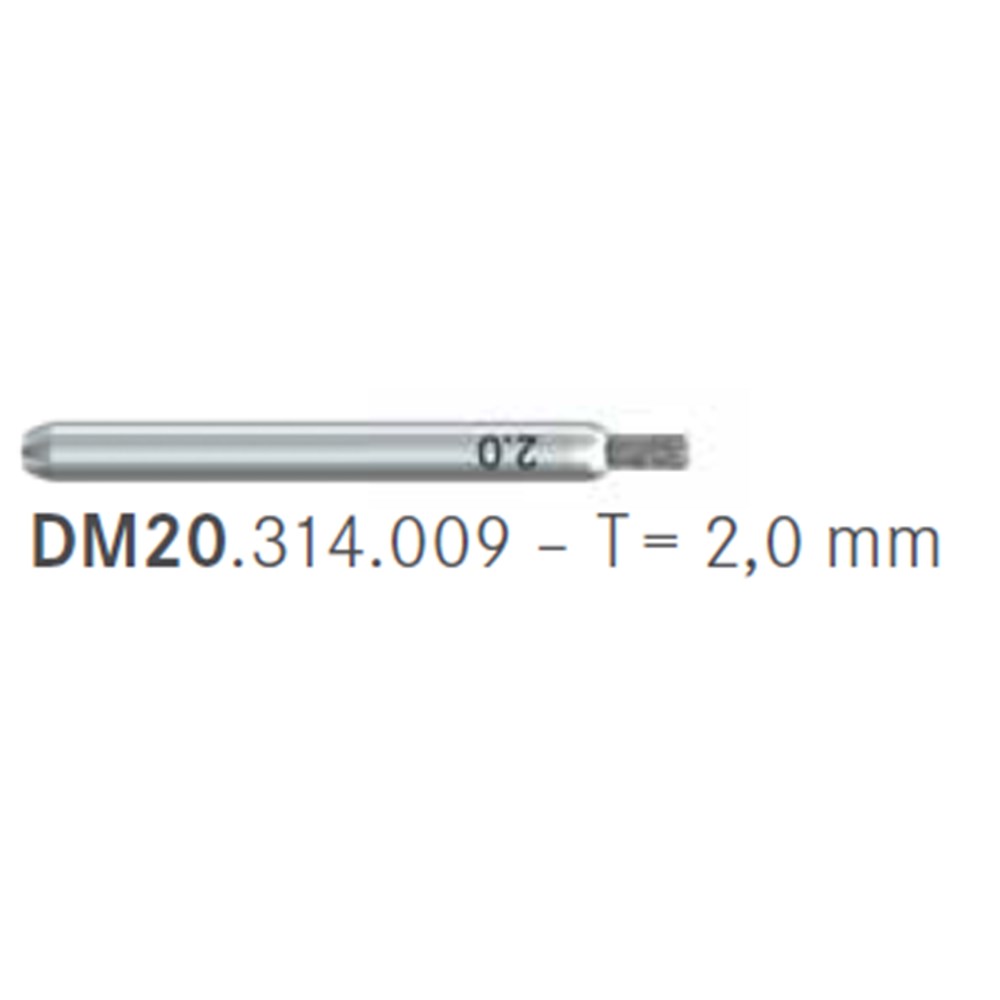 DM20 FG 314, size 009 (0.09mm) with cutting depth of 2mm. PrepMarker burs are designed for marking the required depth prior to the actual preparation. The rounded step above the diamond coated working part, prevents inadvertent excessive preparations. The instruments are available in 4 versions. 0.5, 1. 1.5, and 2mm. The correct depth can be identified at a glance, thanks to the clearly visible laser mark on the shank. PrepMarkers can be used for all kinds of depth marking as a prepatory measure for veneers, inlays, onlays, overlays, occlusal onlays, crowns & bridges.