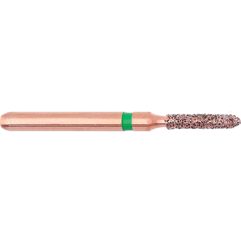 DIAO - KP6877 is a short parallel chamfer, torpedo shaped coarse friction grip diamond used for crown preparation. Head diameter 012 (1.2mm) and 6.0mm working length.