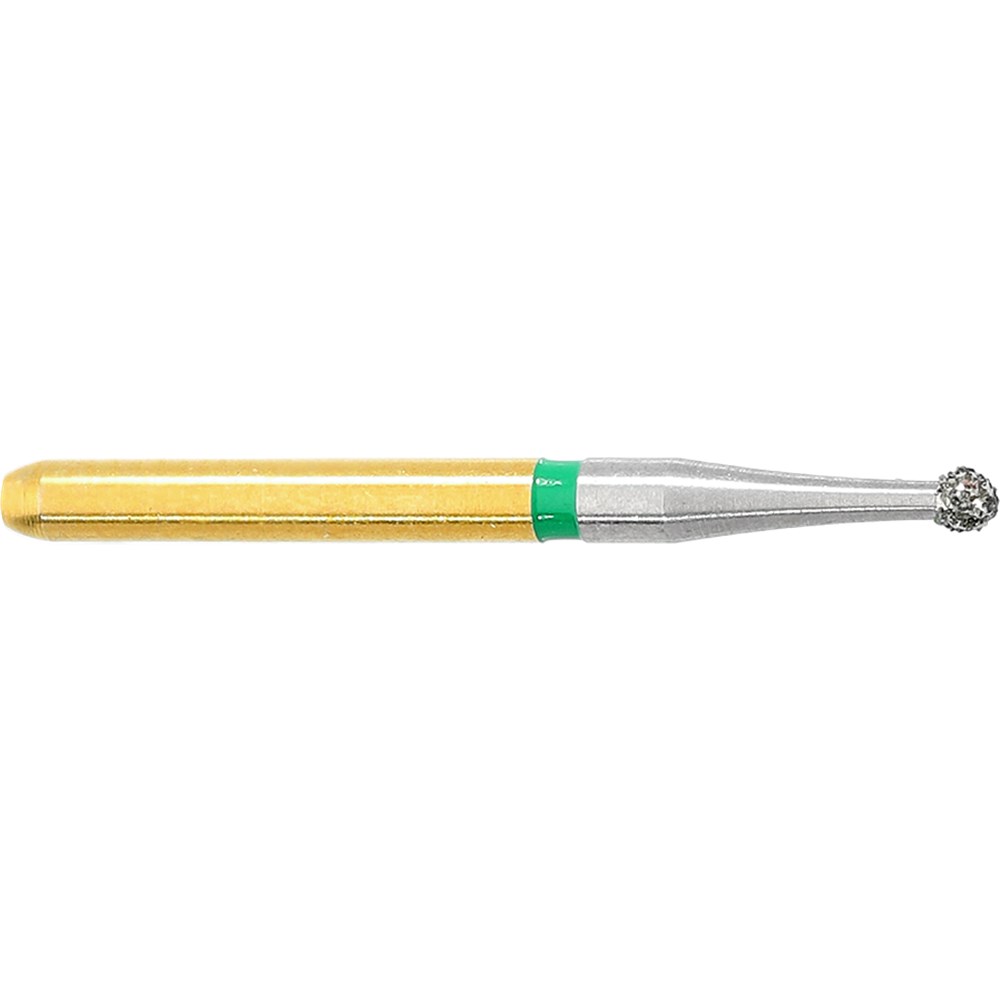 The S6801 is a round shaped, coarse (green) grit bur used for oclussal/lingual reduction.