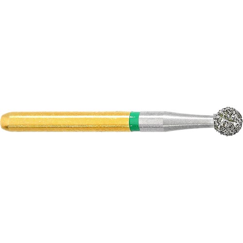 The S6801 is a round shaped, coarse (green) grit bur used for oclussal/lingual reduction.