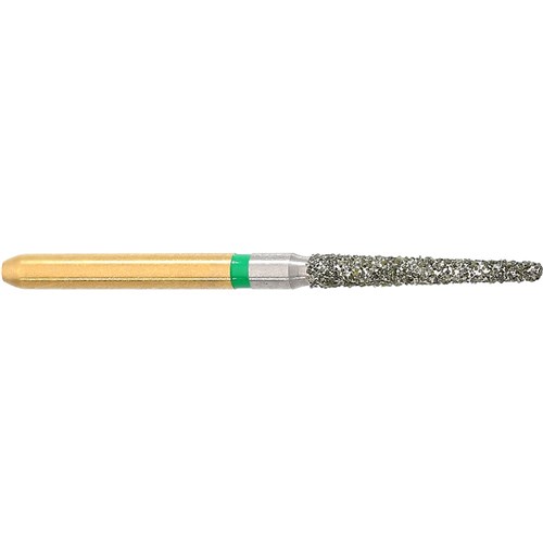 S6848KR coarse long tapered shoulder, rounded edge S-Diamond for crown preparation. FG 314, size 016 (1.6mm diameter) with 10mm working length and 2 degree angle.