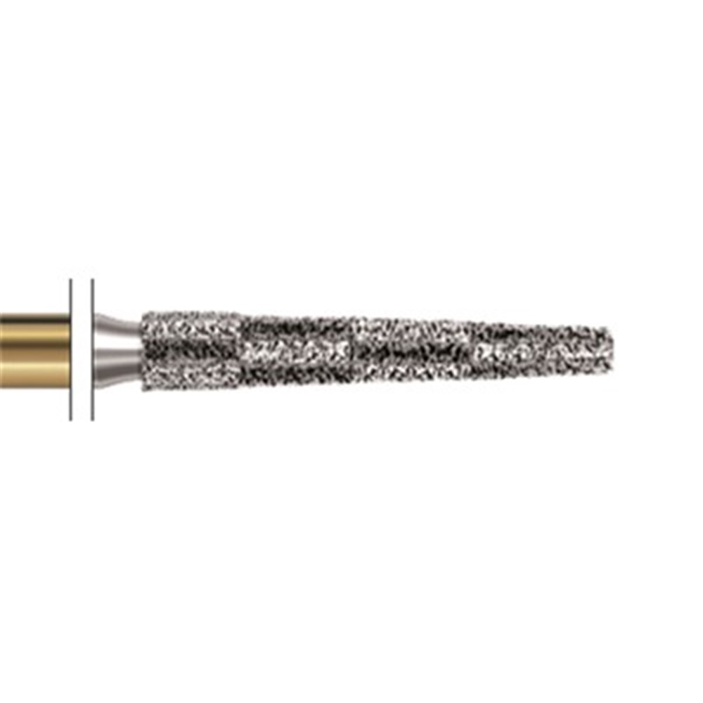 S6848KR coarse long tapered shoulder, rounded edge S-Diamond for crown preparation. FG 314, size 018 (1.8mm diameter) with 10mm working length and 2 degree angle.