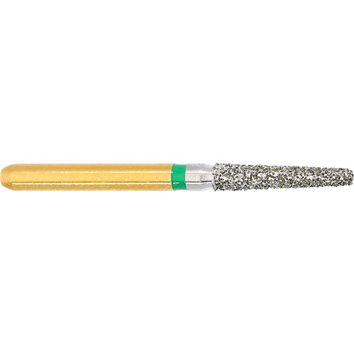 The S6856 is a tapered chamfer, round with a coarse (green) grit bur used for crown preparation.
