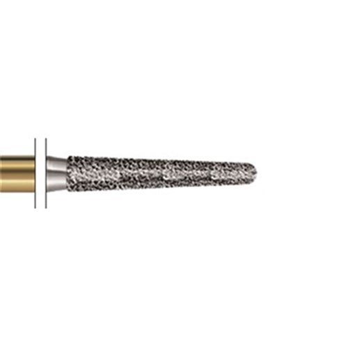 S6856 coarse tapered chamfer, round S-Diamond for crown preparation. FG 314, size 016 (1.6mm diameter) with 8mm working length and 2 degree angle. Matches H375R carbide finisher series.