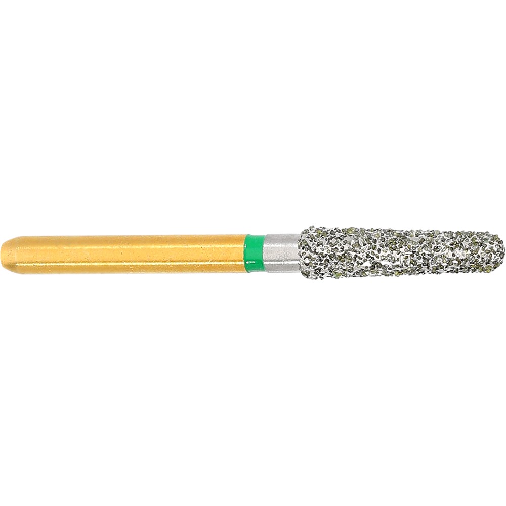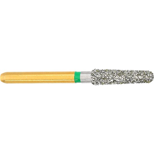 The S6856 is a tapered chamfer, round with a coarse (green) grit bur used for crown preparation.