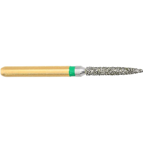 The S6862 is a flame with a coarse (green) grit bur used for crown preparation.