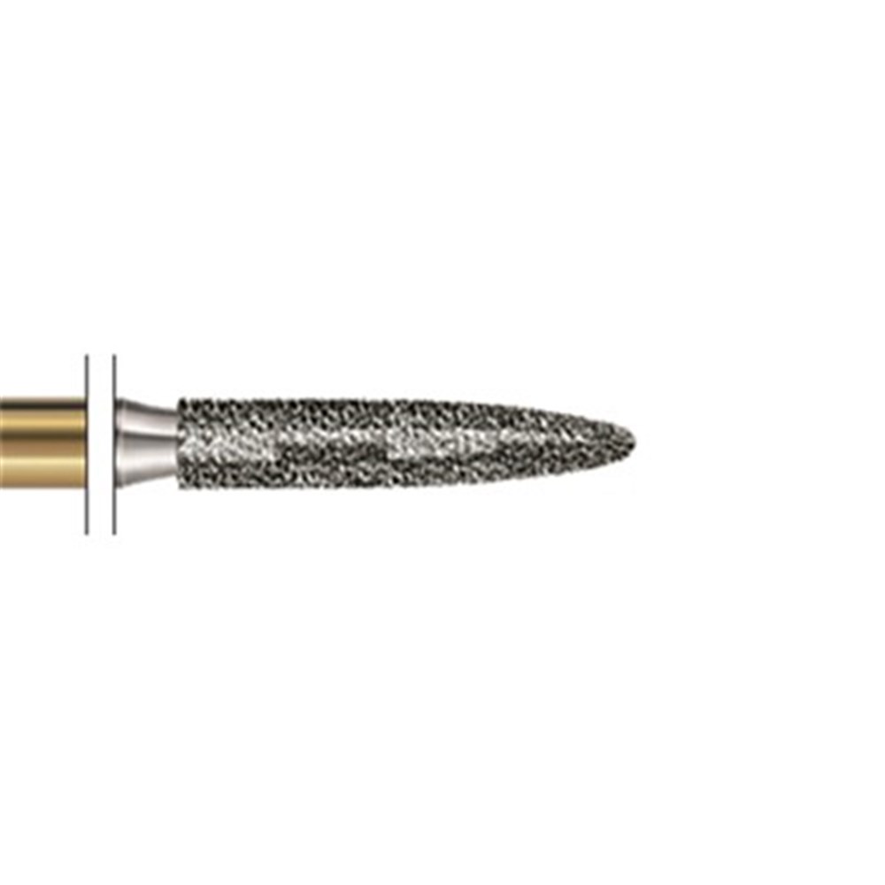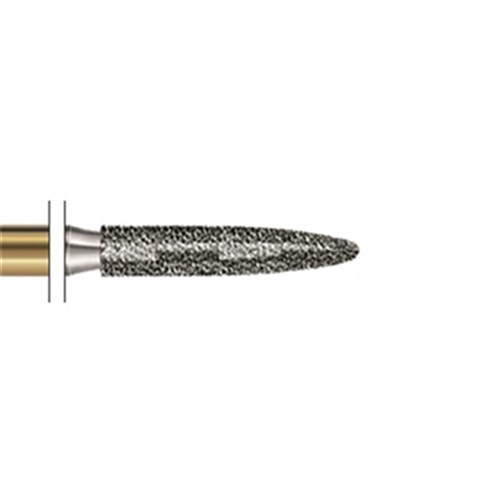 S6862 coarse flame S-Diamond for crown preparation. FG 314, size 012 (1.2mm diameter) with 8mm working length. Matches H348L carbide finisher series.