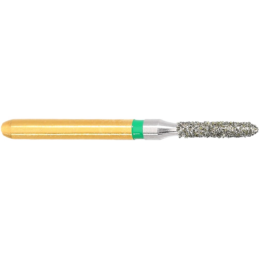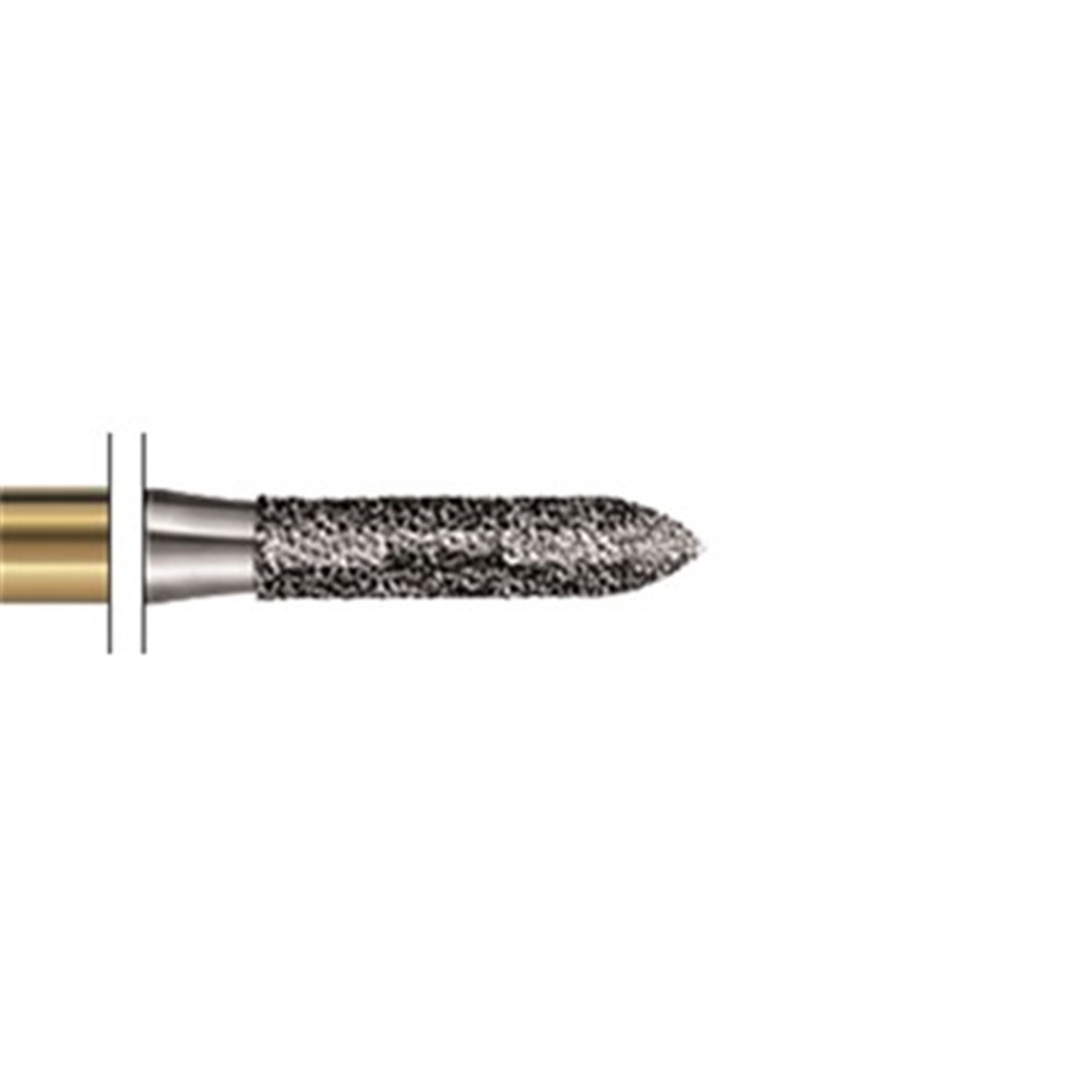 S6877 coarse short parallel chamfer, torpedo S-Diamond for crown preparation. FG 314, size 012 (1.2mm diameter) with 6mm working length. Matches H282 carbide finisher series.