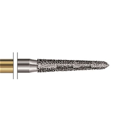 S-Diamond S6878K is a tapered chamfer torpedo, coarse diamond used for crown preparation. FG 314 Size 012 (1.2mm), with length 8.0mm, with 2 degree angle. Matches H283K carbide finisher series.