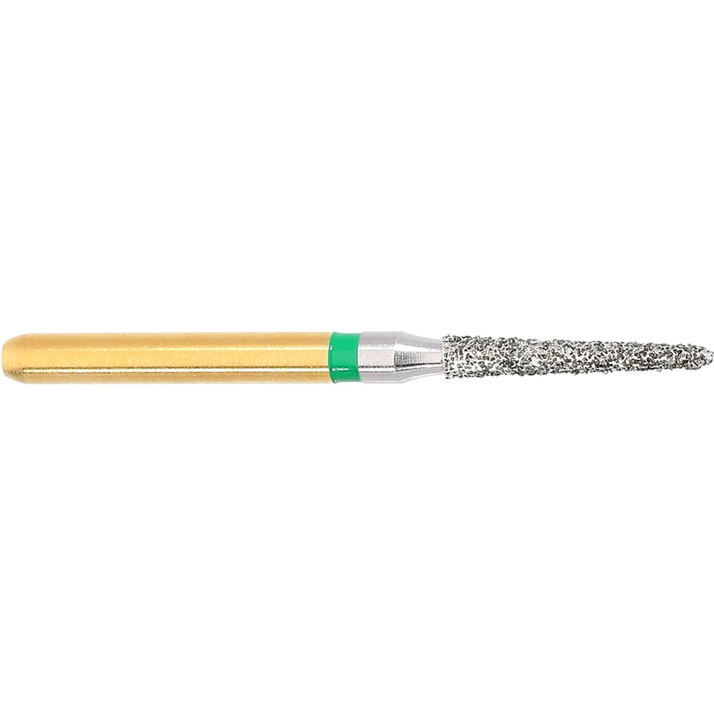 The S6878K is a tapered chamfer torpedo (green) grit bur used for crown preparation.