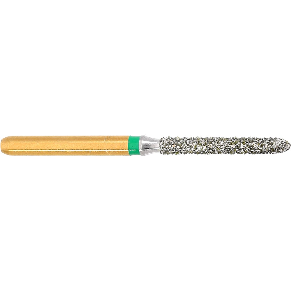 S-Diamond S6879 is a long parallel chamfer torpedo, coarse diamond used for crown preparation. FG 314 Size 014(1.4mm), with length 10.0mm. Matches H284 carbide finisher series.