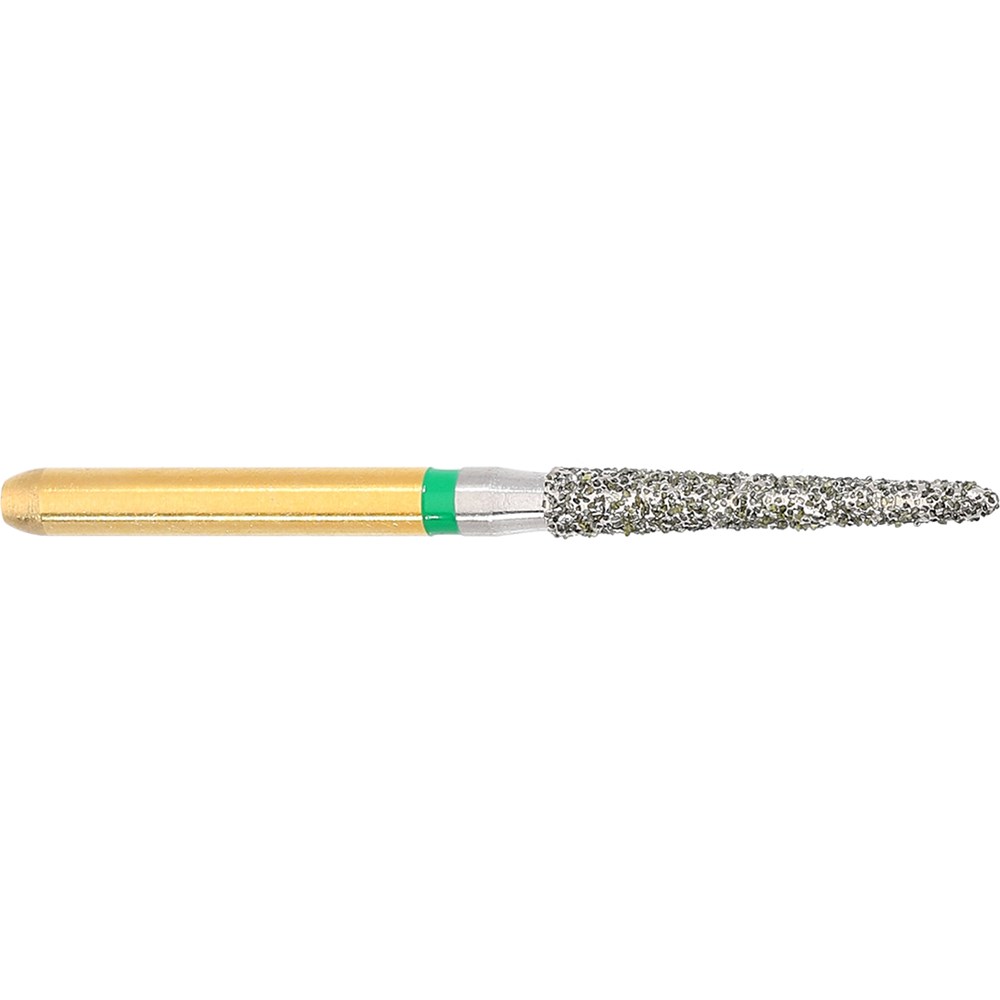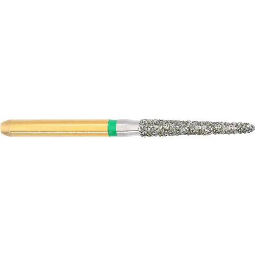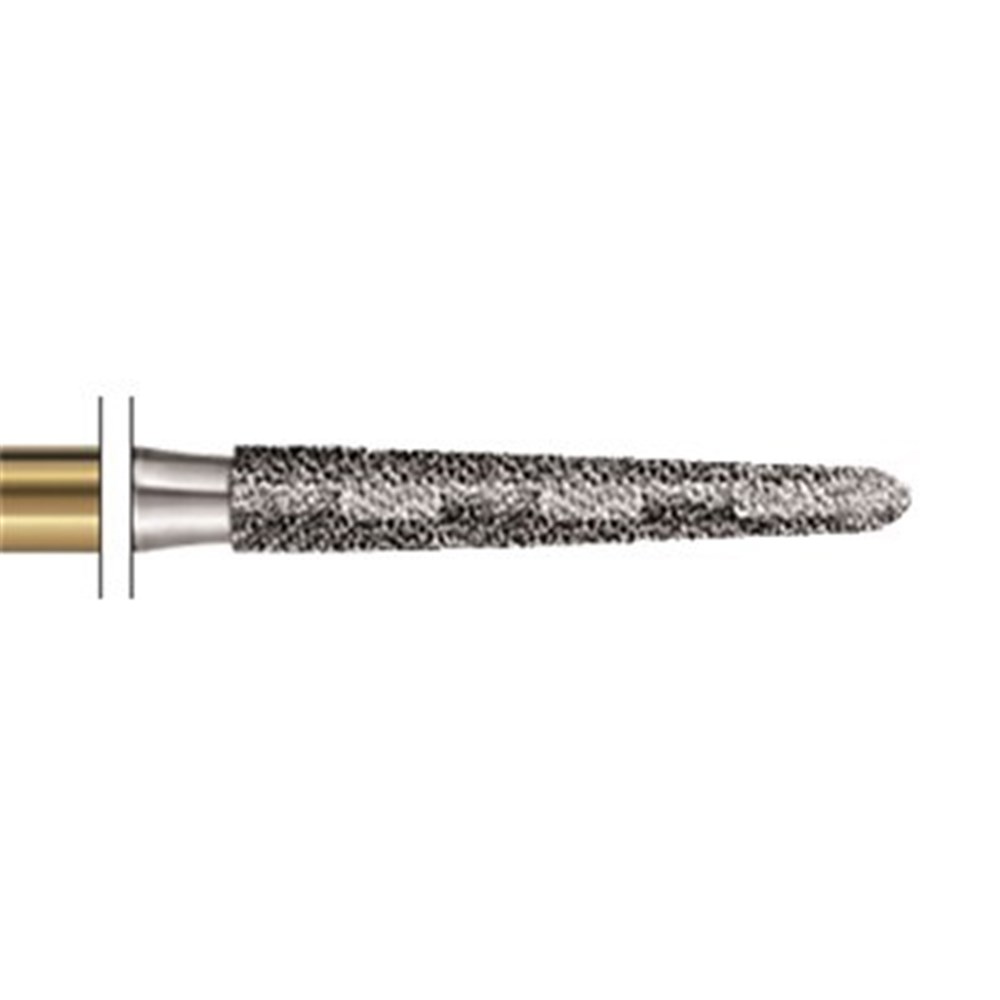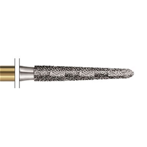 S-Diamond S6879K is a long tapered chamfer torpedo, coarse diamond used for crown preparation. FG 314 Size 016(1.6mm), with length 10.0mm and 2 degree angle. Matches H284K carbide finisher series.